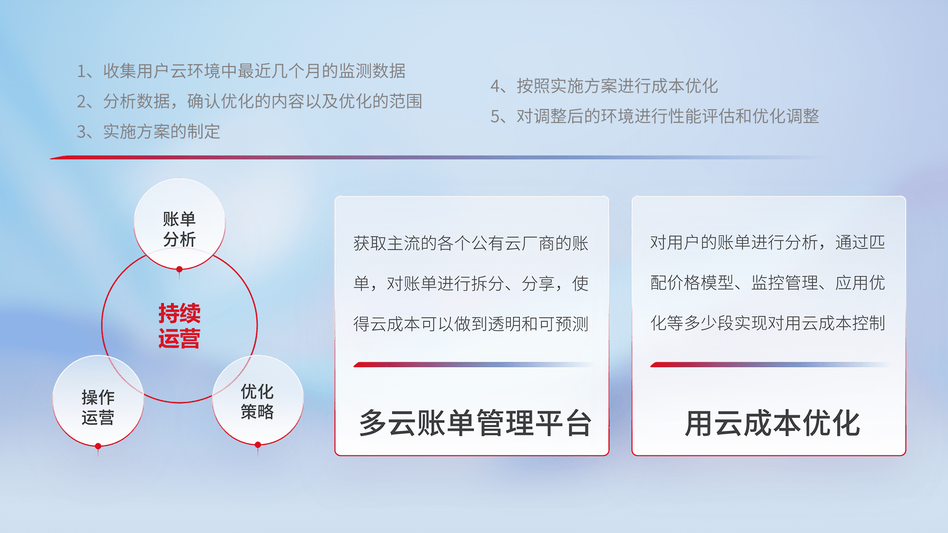 监控业务系统资源开销,,对资源的消耗精确计量,,,实现费用的透明化管理,,,,不断提升资源使用率,,,调整资源购买方式,,,,降低资源费用成本,,用云成本可预测、、、、用云费用可优化,,,云资源配额有据可依。。