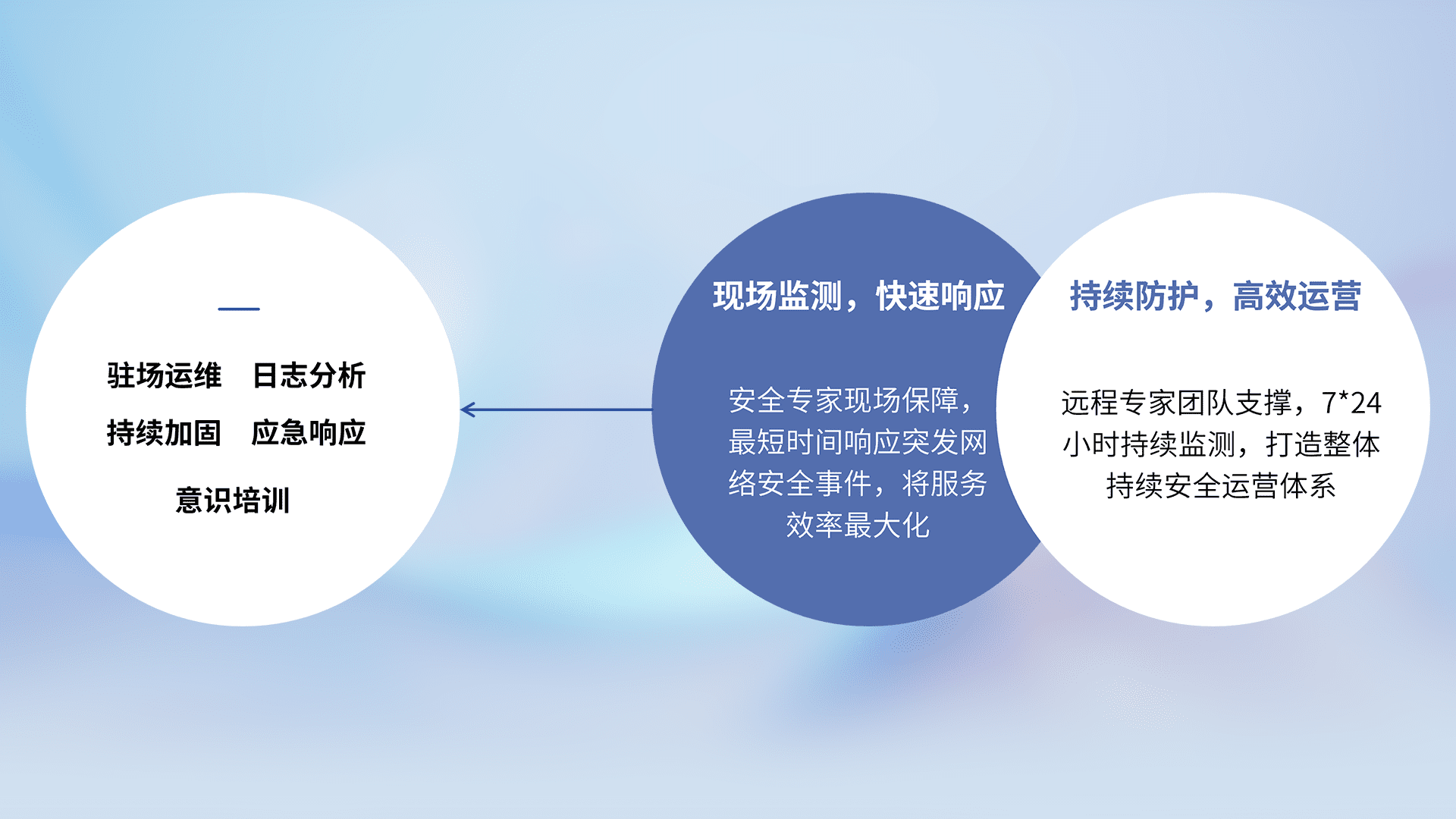 7X24小时持续监测安全事件,保持安全策略有效性,降低资产脆弱性风险,,,,精准拦截黑客攻击,,,,减少被黑客利用的机会,,,,第一时间遏制,,,降低损失。。
